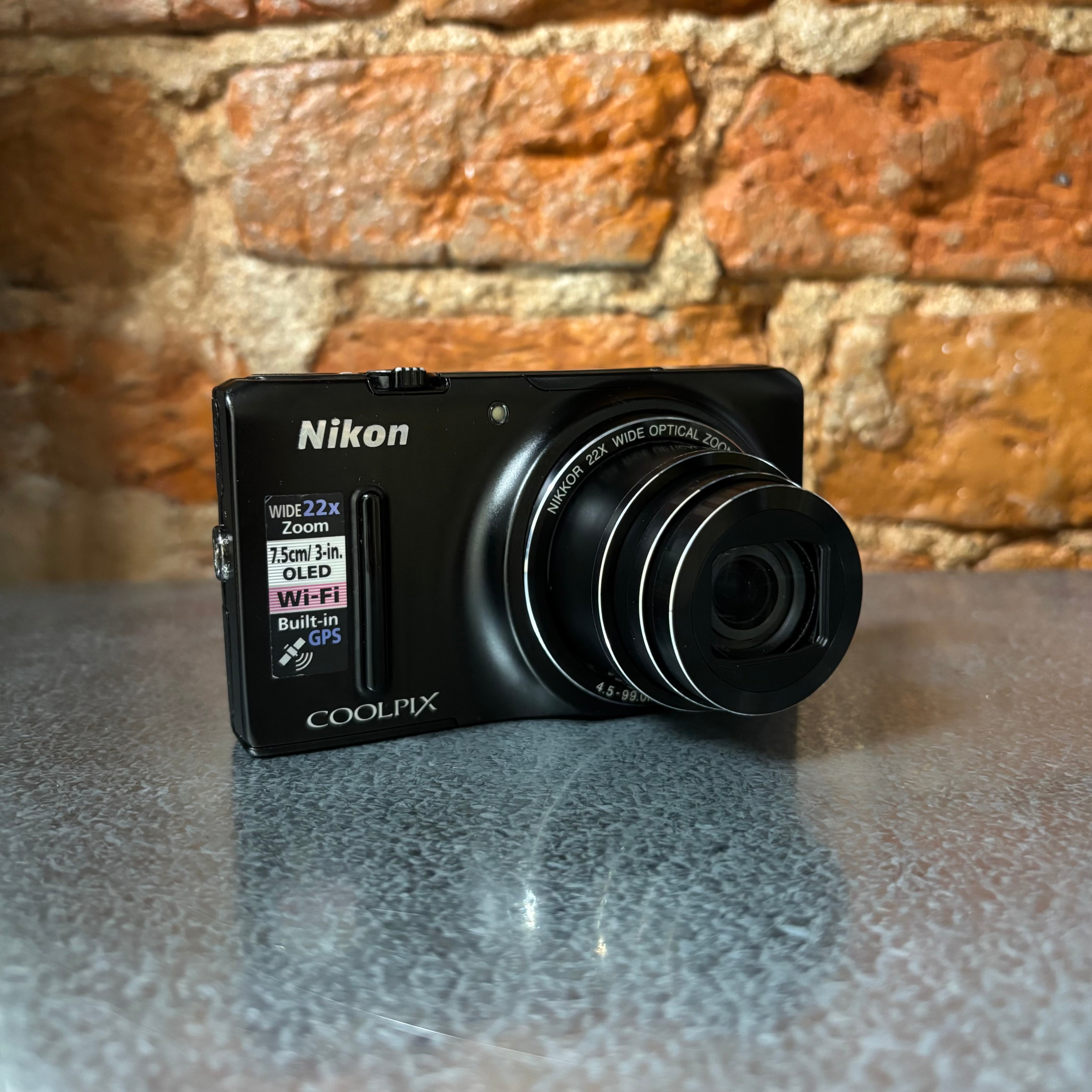 Черный Nikon Coolpix S9500 в прекрасном состоянии с чехлом, ремешком и картой памяти.